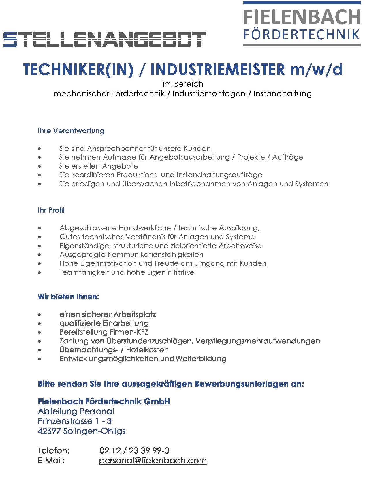 Das Unternehmen Fielenbach Fördertechnik GmbH agiert als unabhängiges Familienunternehmen in den Geschäftsfeldern: